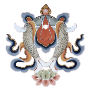 The golden fish holds deep religious and symbolic importance in Bhutan as one of the Eight Auspicious Symbols of Buddhism (Tashi Tagye), representing happiness, freedom, and spiritual liberation. It is a timeless emblem of prosperity and the joyful flow of life, often seen in monasteries, temples, and traditional Bhutanese art.
