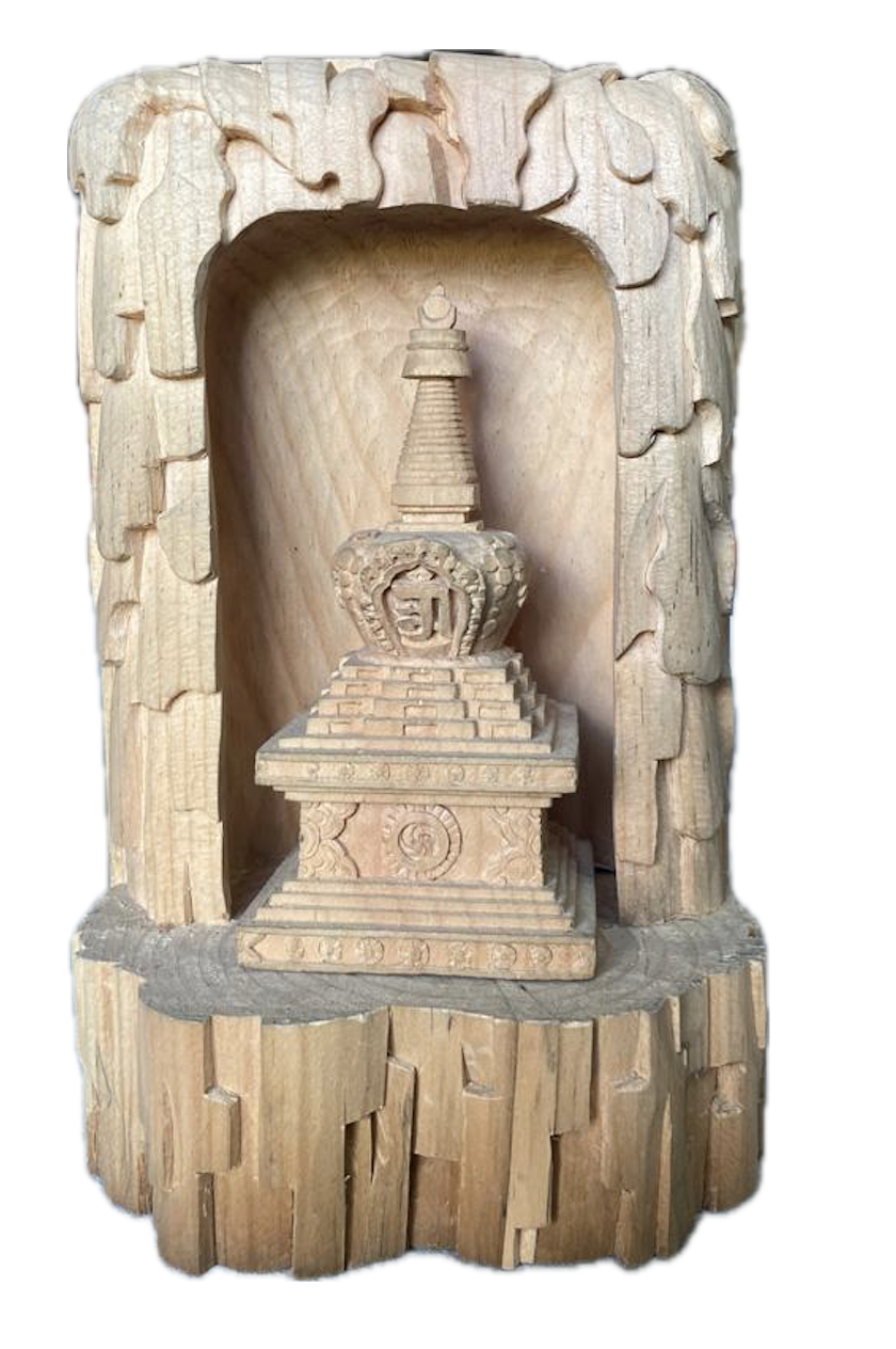 Product 0081 showcases the depiction of stupa of many doors carved from ‘Bogh’.